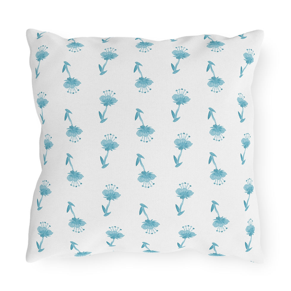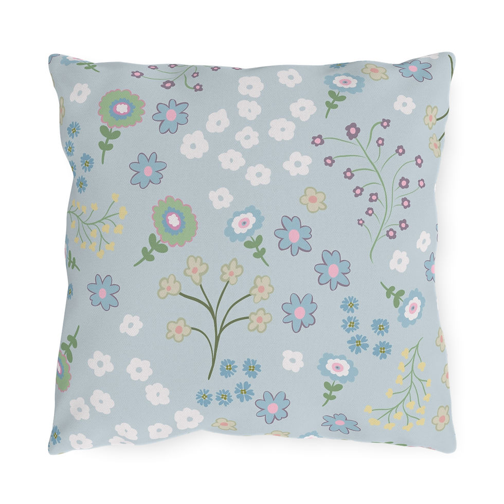 Outdoor Pillows - English Garden Calico Design Light Blue MOD