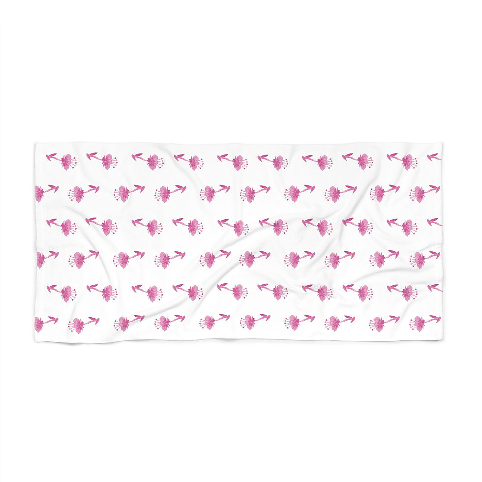 Beach Towel - Cottage Floral Poppy Design- Raspberry Pink