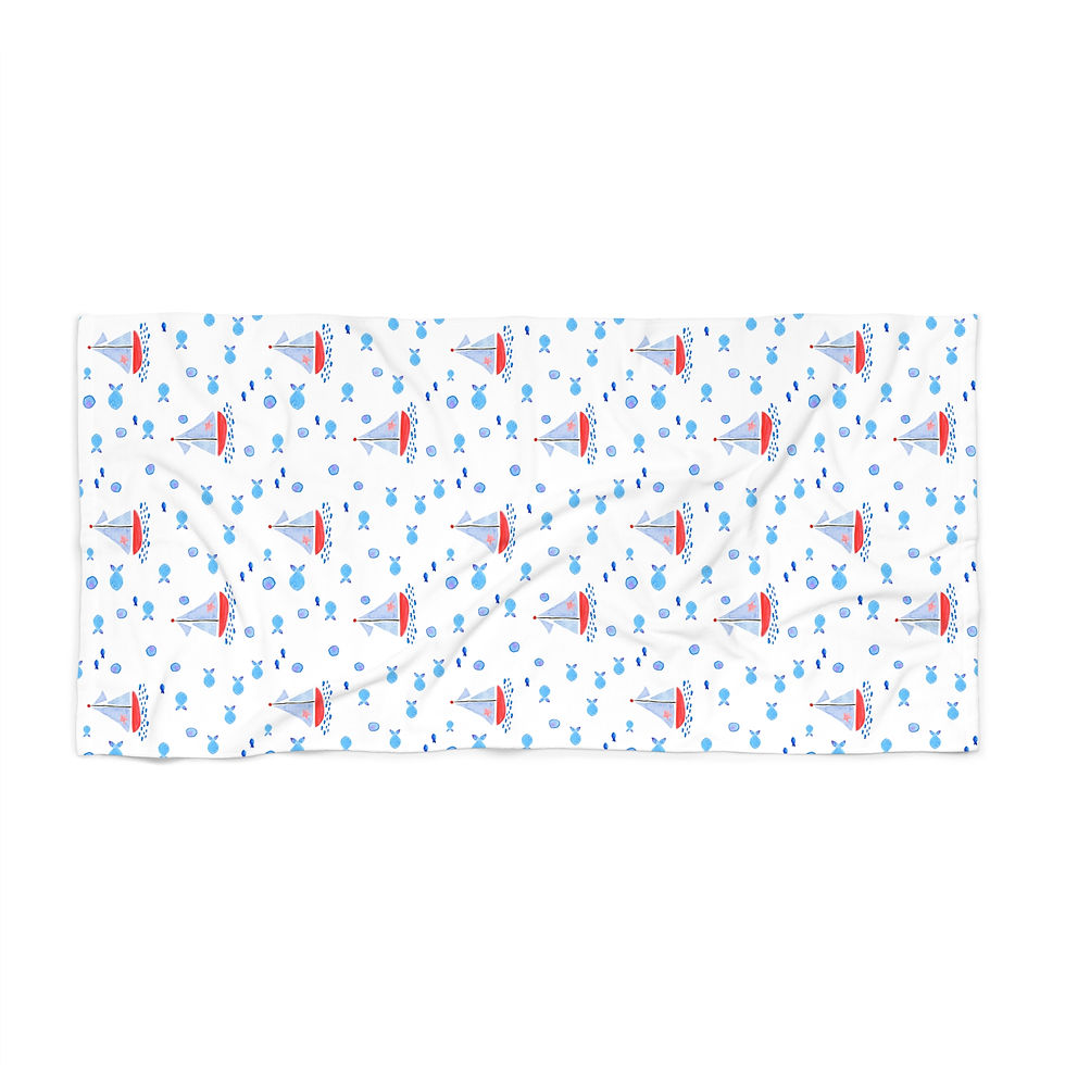 Sailboat Pattern Beach Towel — Nautical Red & Blue Summer Towel