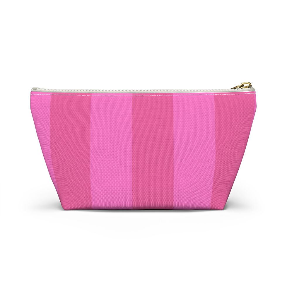 Pink Striped Accessory Pouch | Makeup Bag, Travel Organizer, School Supplies,