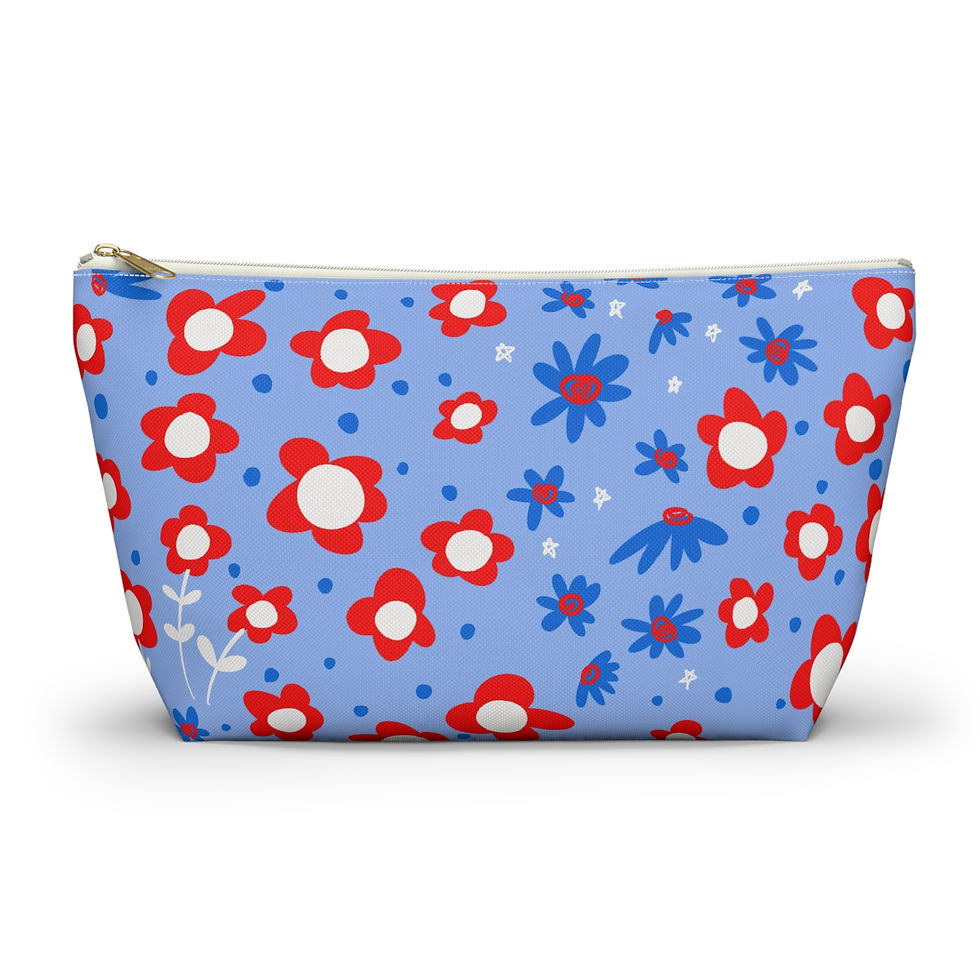 Americana Blue Floral Accessory Pouch, Perfect for Travel, Makeup, or Gifts